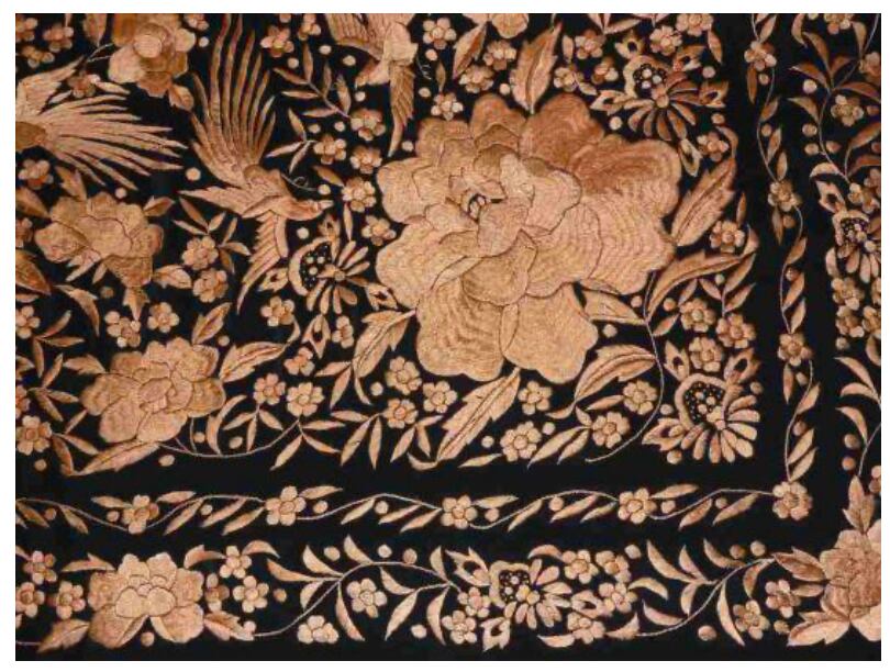 黒地にサーモンピンク色刺繍のマントンです