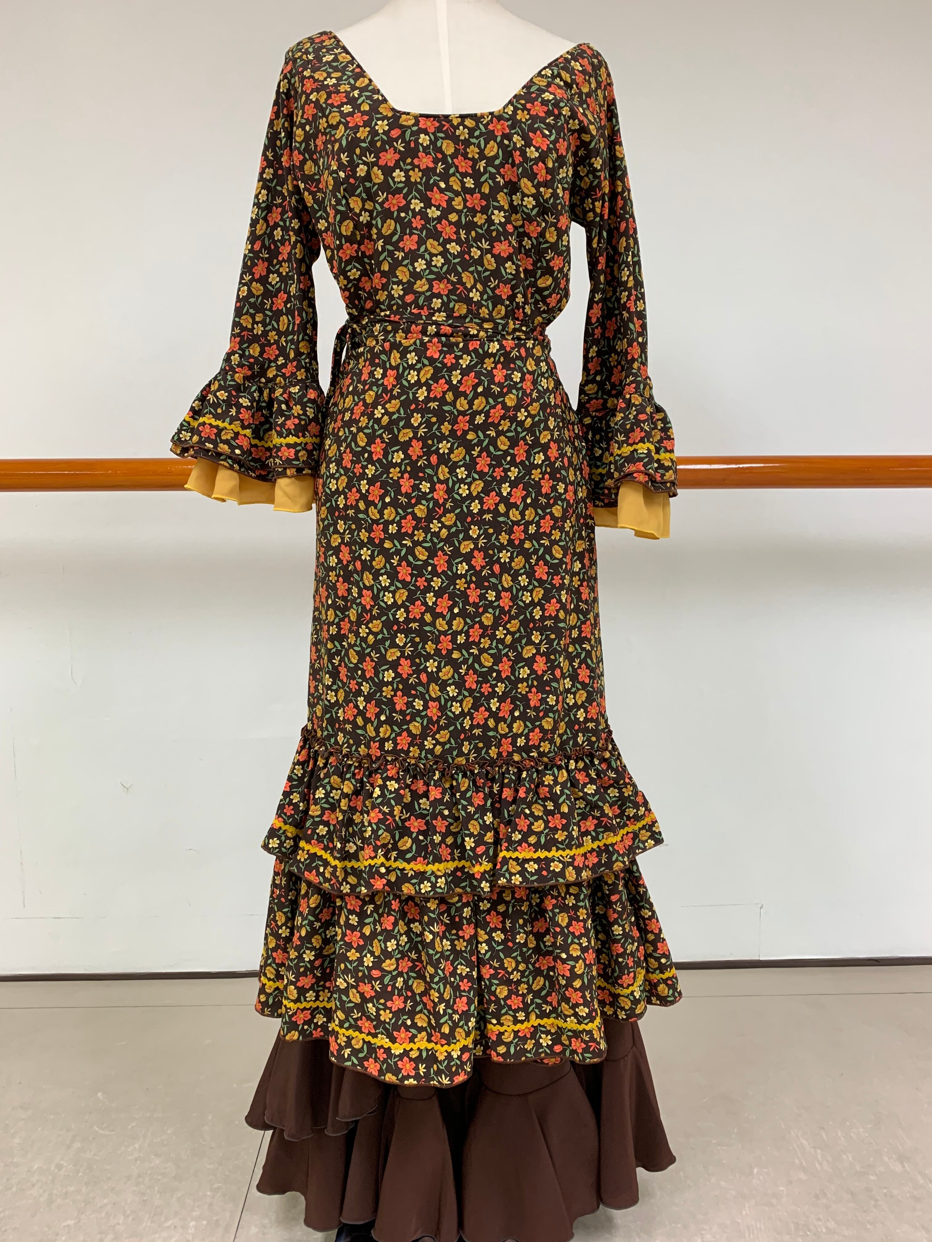 写真は茶系無地スカートの上に巻きスカートを巻いた着用イメージ写真です