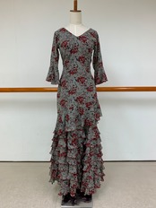 TNT-002 グレー地ボルドー花柄8段フリルスカート