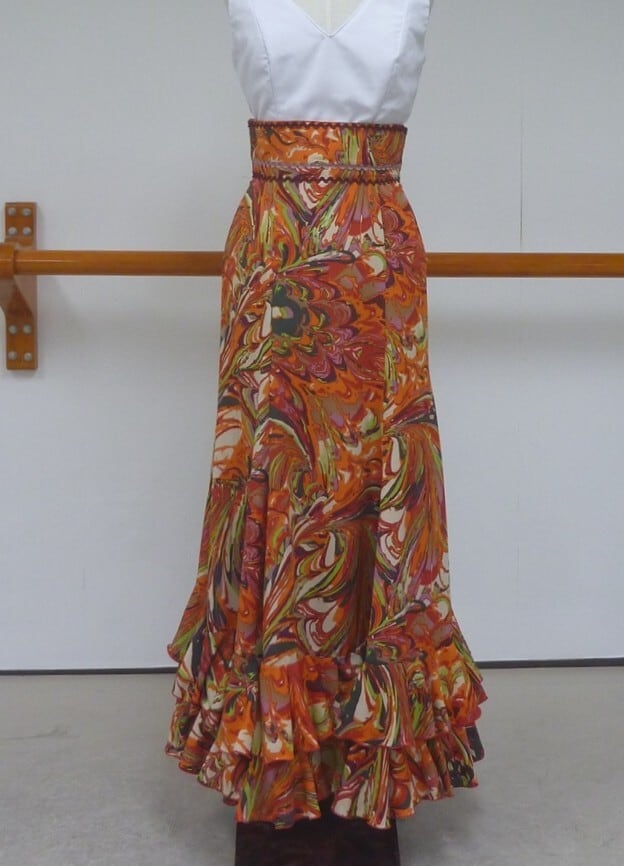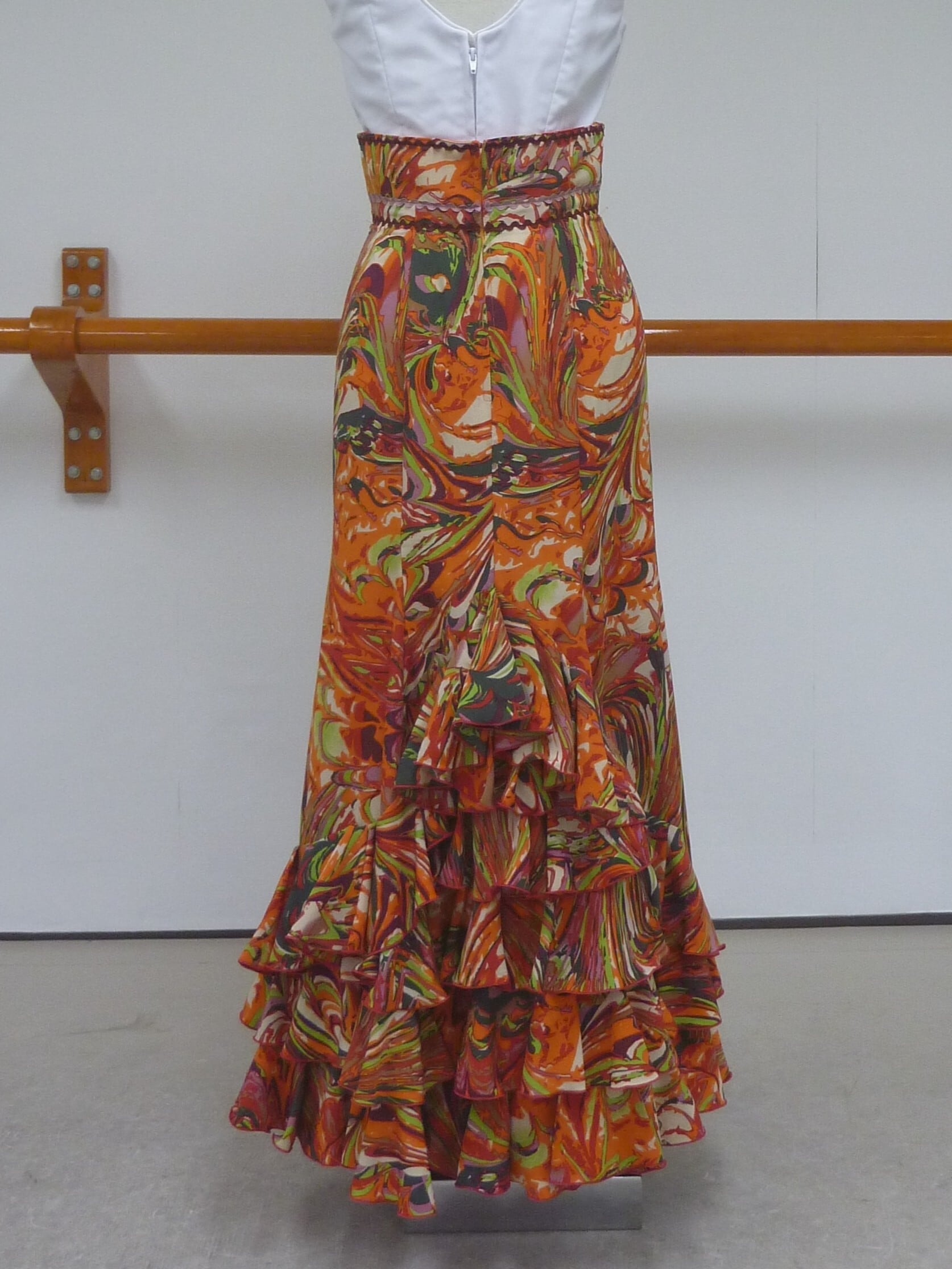 UTQ-0200 オレンジ系マーブル柄ハイウエストスカート