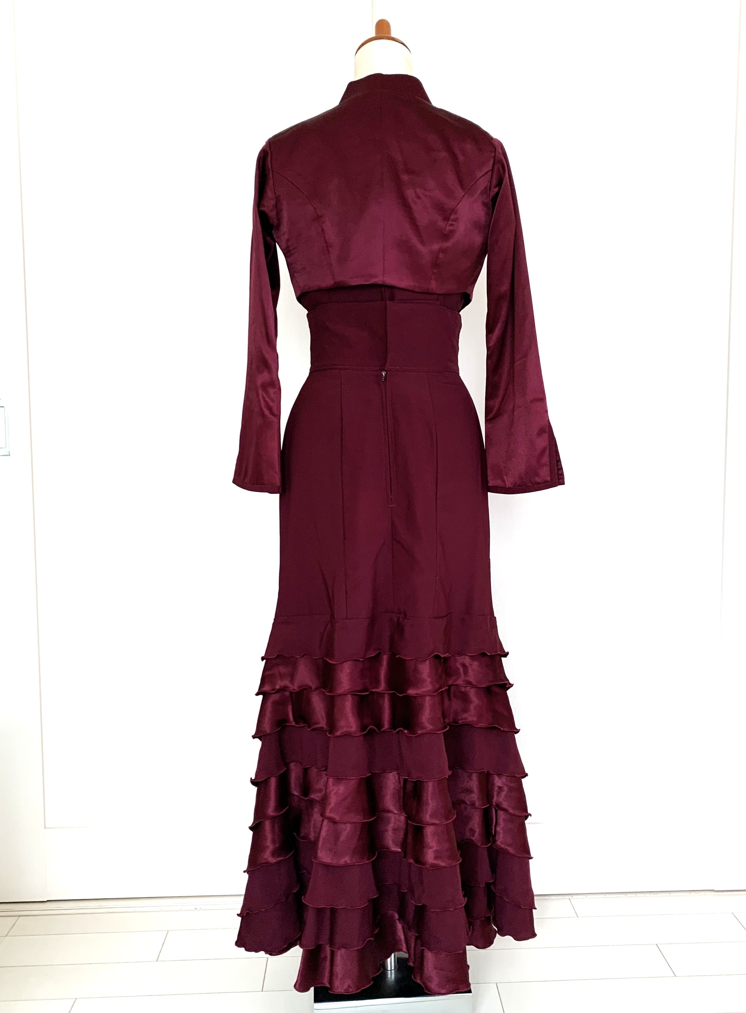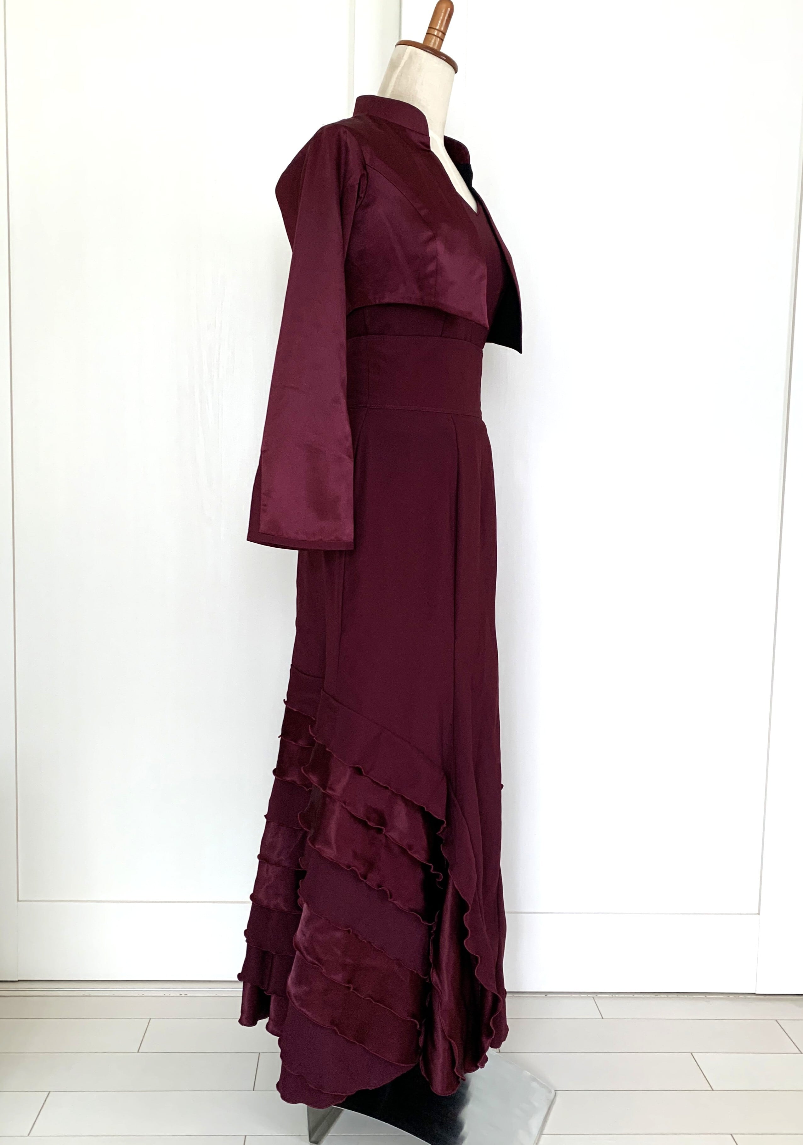ハイウエストスカート、ノースリーブブラウス、長袖のチャケタのスリーピースです